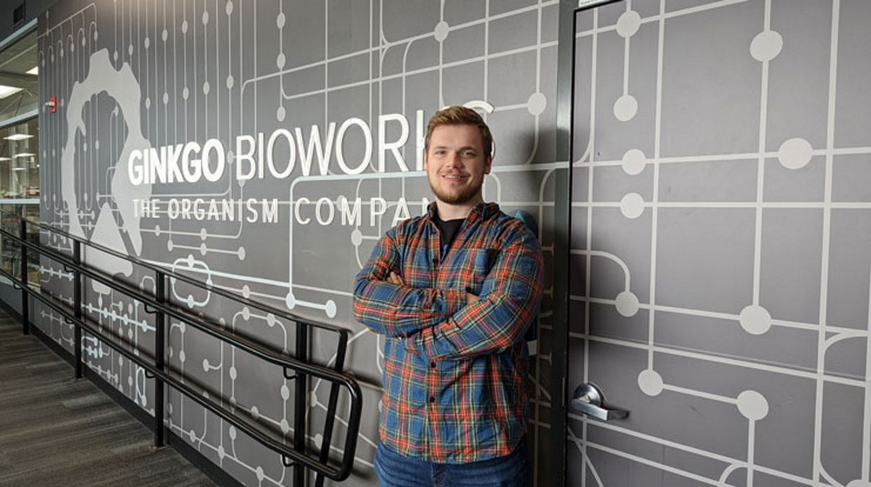 Elijah Carrier, BS ’13, is now the Manager of Transformation Operations for a bioengineering company called Ginkgo Bioworks in the Seaport District.